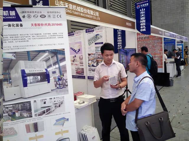 本次展覽會現(xiàn)場人頭攢動,氣氛十分熱烈,天意機械展位也是人氣火爆,前來咨詢鋼結構集成房屋、外墻保溫裝飾一體化板生產線,輕質墻板生產線、復合墻板生產線等產品的客戶絡繹不絕。銷售部李經理,熱情的向來訪的每位客戶,介紹了天意綠色建材裝備在鋼結構建筑、裝配式建產業(yè)化中的應用優(yōu)勢。